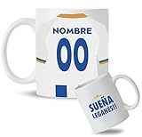 - Personaliza la taza con el nombre y dorsal que desees, eligiendo además si es para chica o chico. Ideal para sorprender a cualquier fan del fútbol con un detalle único.
